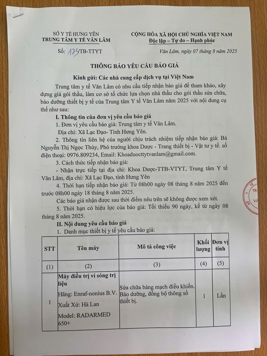 Bệnh viện hạng III và khối Y tế Dự phòng, được tách ra từ Phòng y tế Mỹ Văn,