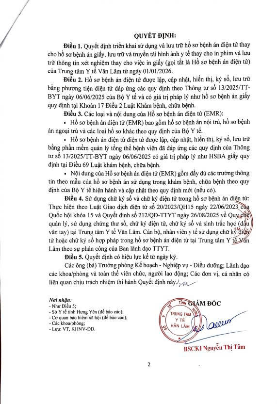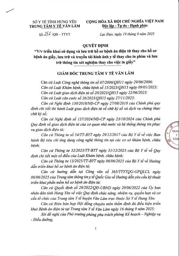 Về việc triển khai bệnh án điện tử tại Trung tâm y tế Văn Lâm