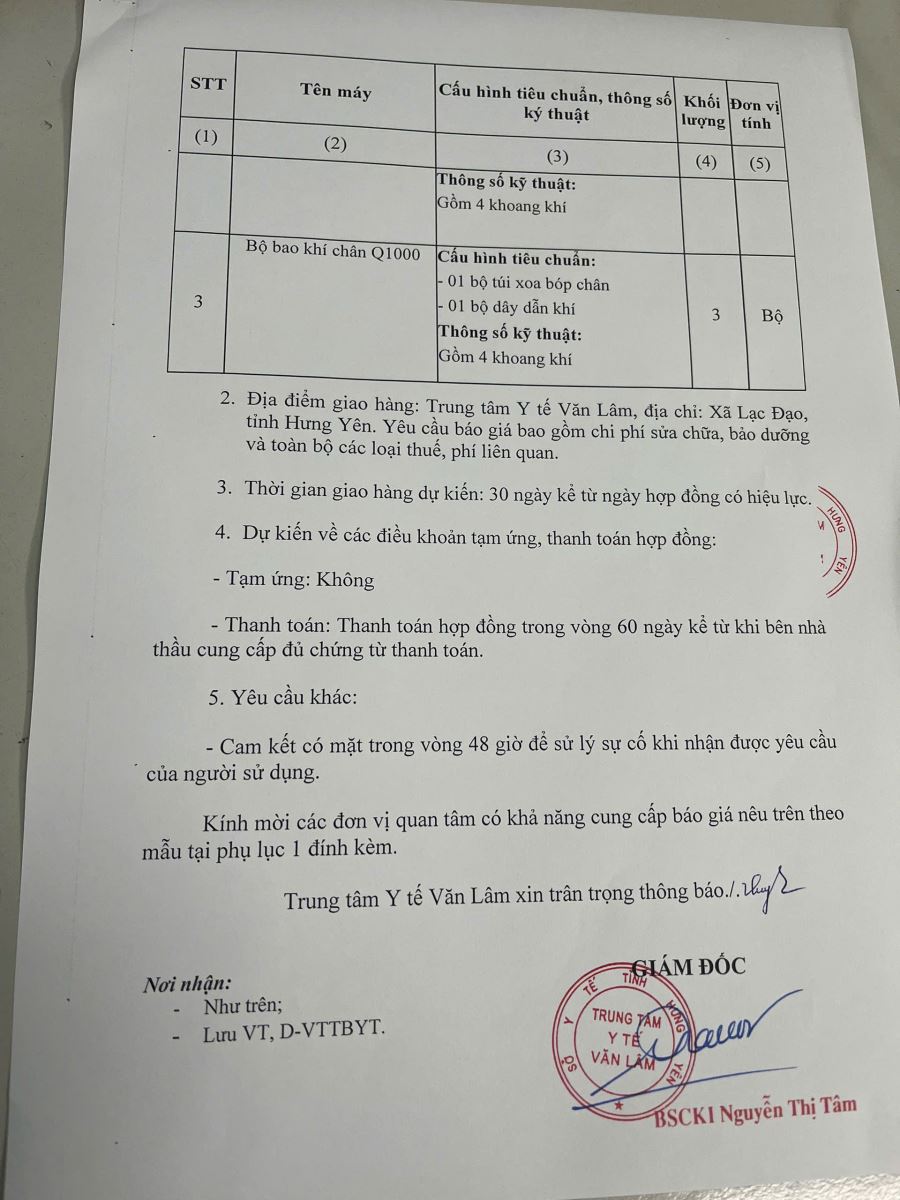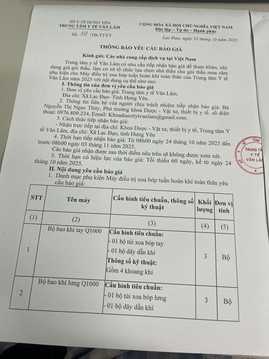 Về Thông báo yêu cầu báo giá để tham khảo, xây dựng giá gói thầu mua sắm phụ kiện cho máy điều trị xoa bóp tuần hoàn khí toàn thân