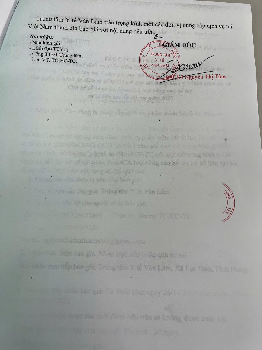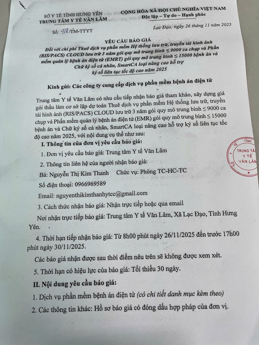 Yêu cầu báo giá thuê dịch vụ phần mềm hệ thống lưu trữ, truyền tải hình ảnh Ris/Pacs cloud 3 năm