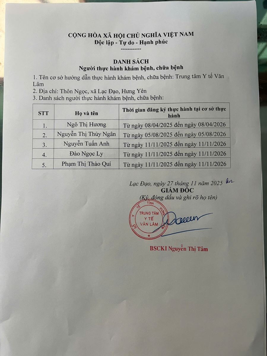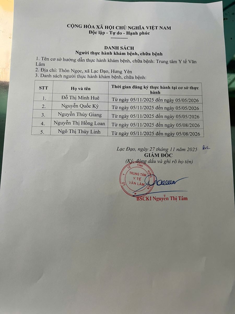 Danh sách người thực hành Khám bệnh, chữa bệnh
